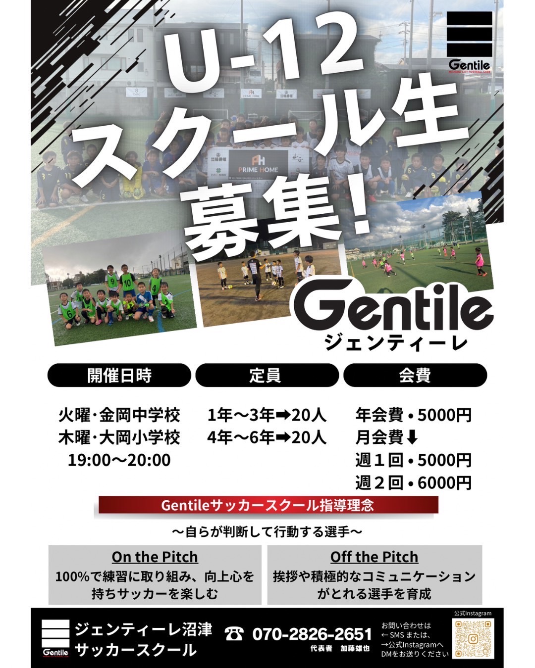 「Gentile 沼津 U-12」では新規スクール生を募集しています!