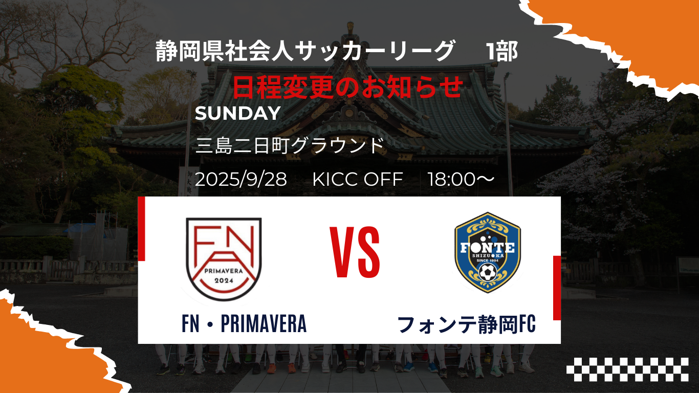 次回の第8節の試合(FN・PRIMAVERA vs フォンテ静岡FC)会場および時間が変更となりました!
