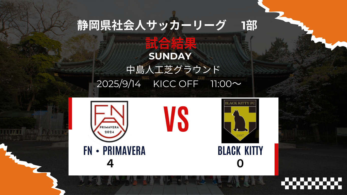 9月14日 FN・PRIMAVERA(エフエヌ・プリマヴェーラ) vs Black KITTY、本日の試合は4-0で勝利しました!
