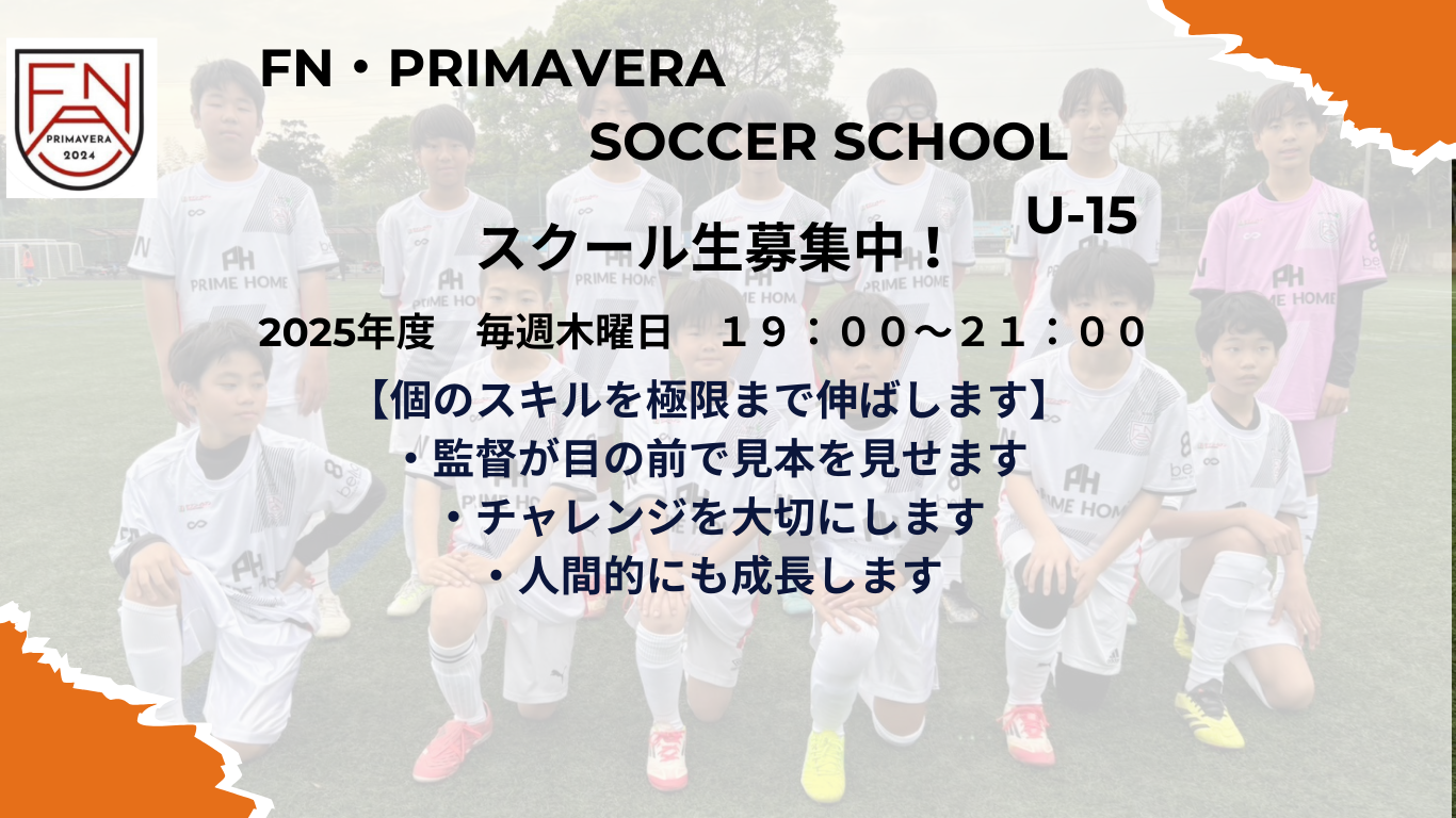 FN・PRIMAVERA(エフエヌ・プリマヴェーラ)はU-15カテゴリのスクール生を募集しています!